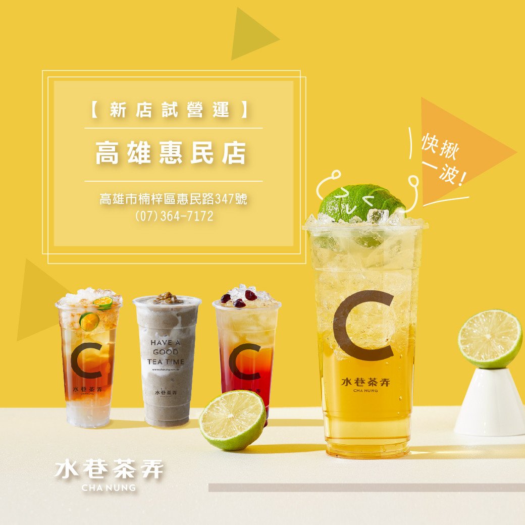 水巷茶弄高雄惠民店試營運中,快揪好友一起喝~